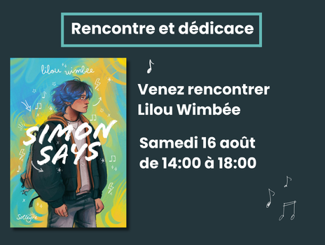 - Samedi 16 août : venez à la rencontre de Lilou Wimbée, l’autrice de Simon Says